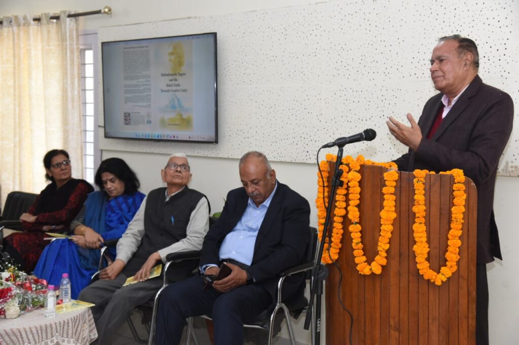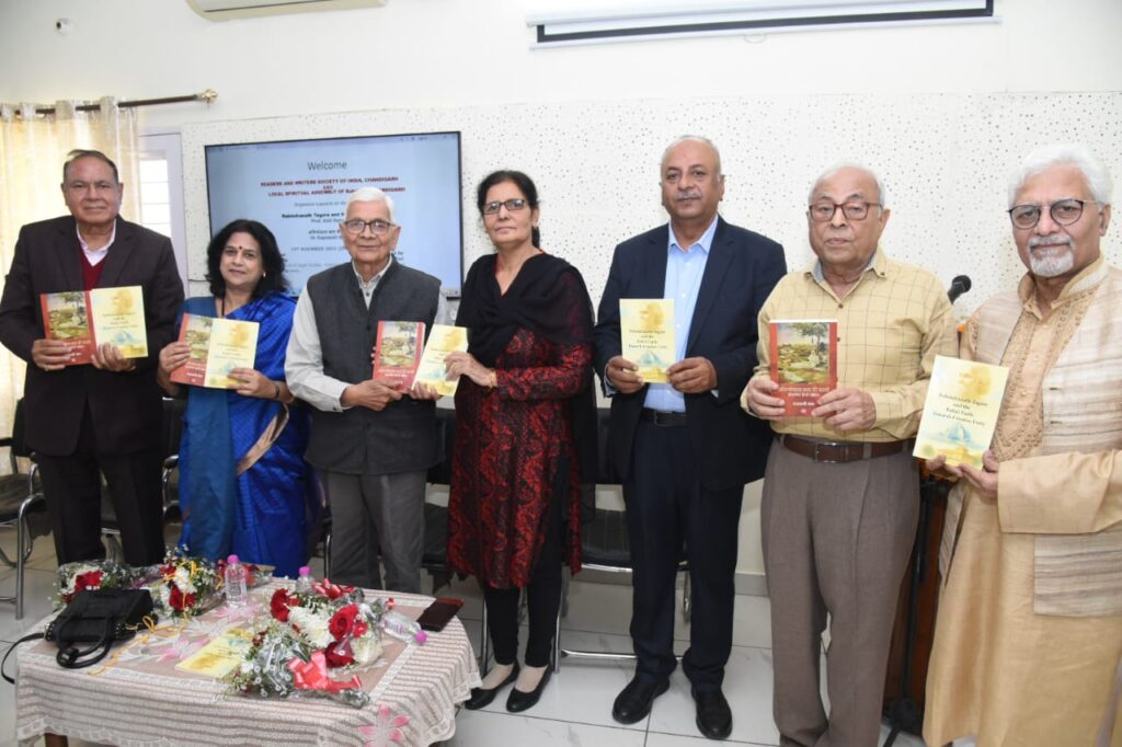 साथ ही सम्मानित अतिथि डॉ. संगीता चौधरी और सलाहियत पत्रिका के मुख्य संपादक डॉ. सुनील भाटिया भी समारोह में शामिल हुए। कार्यक्रम की शुरुआत कोलकाता से आई विदुषी डॉ. संगीता चौधरी द्वारा प्रस्तुत मधुर रबीन्द्र संगीत से हुई। इसके बाद प्रो. अनिल सारवाल ने अपनी पुस्तक में वर्णित प्रमुख विषयों एवं विचारों पर प्रकाश डाला। रीडर्स एंड राइटर्स सोसायटी के अध्यक्ष विनोद खन्ना ने इसी पुस्तक पर अपना शोधपत्र प्रस्तुत किया। डॉ. राजवंती मान ने बताया कि कैसे उन्होंने लंदन जाकर उस समय के प्रतिबंधित साहित्य को खोजा और जलियांवाला बाग़ नरसंहार पर गहन शोध करते हुए उसे पुस्तक के रूप में संकलित किया। अरुण नैथानी और प्रो. प्रसून प्रसाद ने ‘जलियांवाला बाग़ की कराहें’ पर अपने विचार रखते हुए इस पुस्तक को इतिहास के कई अनछुए पहलुओं को उजागर करने वाला महत्वपूर्ण दस्तावेज़ बताया। प्रो. सारवाल की पुस्तक ‘रबीन्द्रनाथ टैगोर एंड बहाई फेथ’ टैगोर के दर्शन और बहाई विचारधारा के बीच समानताओं का विश्लेषण करती है तथा यह दर्शाती है कि दोनों दर्शन एक-दूसरे को कैसे प्रभावित करते हैं। दोनों विचारधाराएं अपने समय से कहीं आगे की मानवीय सोच का प्रतिनिधित्व करती हैं। ट्राइसिटी के अनेक प्रबुद्ध साहित्यकारों सहित बाहरी राज्यों से आए विद्वानों ने भी कार्यक्रम में भाग लिया और प्रश्न–उत्तर सत्र में अपनी जिज्ञासाएँ साझा कीं। कार्यक्रम का कुशल संचालन डॉ. सुधीर बवेजा ने किया। अंत में प्रो. अनिल सारवाल ने सभी अतिथियों व उपस्थित जनों का आभार व्यक्त किया।