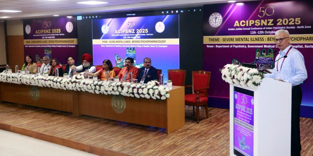 चंडीगढ़ । गवर्नमेंट मेडिकल कॉलेज एवं अस्पताल, सेक्टर 32 (जीएमसीएच), चंडीगढ़ के मानसिक रोग विभाग ने इंडियन साइकियाट्रिक सोसाइटी – नॉर्थ ज़ोन (आईपीएस-एनज़ेड 2025) के गोल्डन जुबली वार्षिक सम्मेलन की मेज़बानी की। दो दिवसीय गोल्डन जुबली यह समारोह न केवल अकादमिक उत्कृष्टता के पचास वर्षों को चिह्नित करता है, बल्कि यह मानसिक स्वास्थ्य सेवा के क्षेत्र में करुणा, सेवा और प्रतिबद्धता के पाँच दशकों का भी प्रतीक है।