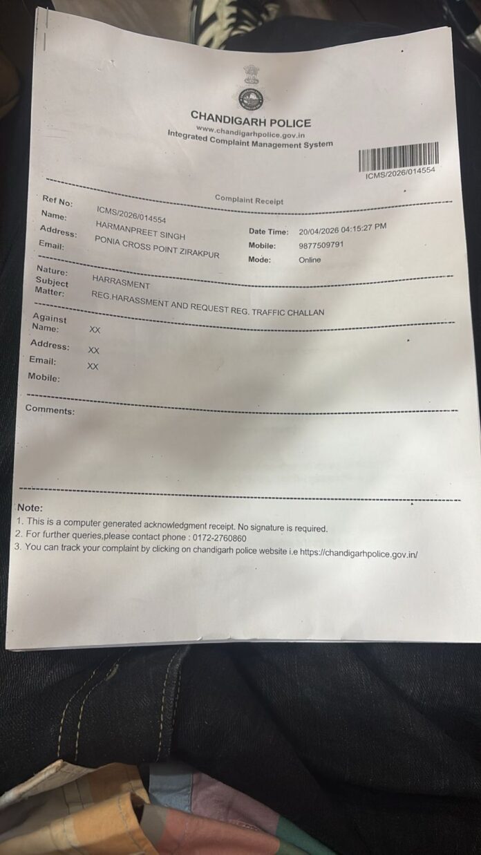 चंडीगढ़ । चंडीगढ़ में ट्रैफिक पुलिस पर रिश्वत मांगने और अभद्र व्यवहार करने के गंभीर आरोप लगे हैं। जीरकपुर निवासी हरमनप्रीत सिंह ने आरोप लगाया है कि हम हल्लोमाजरा चौक पर ड्यूटी पर तैनात एक ट्रैफिक पुलिस कर्मी ने उससे अवैध पैसे की मांग की और मना करने पर भारी चालान कर दिया।शिकायत के अनुसार, 19 अप्रैल को शाम करीब 5:30 बजे हरमनप्रीत अपनी मोटरसाइकिल पर हल्लोमाजरा चौक से गुजर रहा था। उस समय उसके पास वाहन के भौतिक दस्तावेज नहीं थे, लेकिन उसने पुलिस कर्मी को बताया कि सभी दस्तावेज ऑनलाइन उपलब्ध हैं और वह तुरंत दिखा सकता है।आरोप है कि ड्यूटी पर मौजूद सब-इंस्पेक्टर सुभाष चंद्र ने पहले 3000 और बाद में 2000 रिश्वत देने का दबाव बनाया। जब युवक ने पैसे देने से इनकार किया तो उसके साथ अभद्र भाषा का प्रयोग किया गया। यहां तक कि फोन पर बात कर रहे उसके परिचित से भी बदसलूकी की गई।14 हजार का चालान, बाइक जब्तयुवक का आरोप है कि रिश्वत न देने पर पुलिस कर्मी ने उसके खिलाफ करीब 14 हजार का चालान काट दिया और मोटरसाइकिल भी जब्त कर ली। उसने कहा कि चालान में लगाए गए आरोप वास्तविकता से मेल नहीं खाते और यह कार्रवाई बदले की भावना से की गई है।उच्च अधिकारियों से की शिकायतपीड़ित ने मामले की शिकायत पुलिस महानिदेशक (डीजीपी ) और वरिष्ठ पुलिस अधीक्षक (एसएसपी ) चंडीगढ़ को भेजकर निष्पक्ष जांच की मांग की है। साथ ही संबंधित पुलिस कर्मी के खिलाफ सख्त कार्रवाई, चालान रद्द करने और जब्त वाहन को रिहा करने की मांग की है।