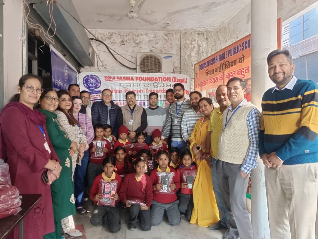 ढकोली (पंजाब)। ढकोली स्थित शालीमार परिसर में संचालित तथास्तु चैरिटेबल स्कूल में ब्रजआशा फाउंडेशन द्वारा विंटर सीजन को ध्यान में रखते हुए बच्चों को गर्म कपड़े वितरित किए गए। फाउंडेशन की ओर से लगभग 150 बच्चों को स्वेटर और जुराबें प्रदान की गईं। गर्म कपड़े पाकर बच्चों के चेहरों पर खुशी देखते ही बन रही थी, और विद्यालय परिसर में उत्साह का माहौल देखने को मिला।