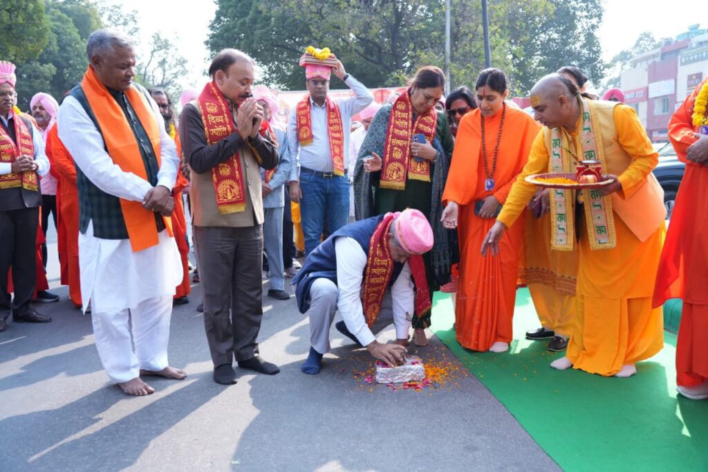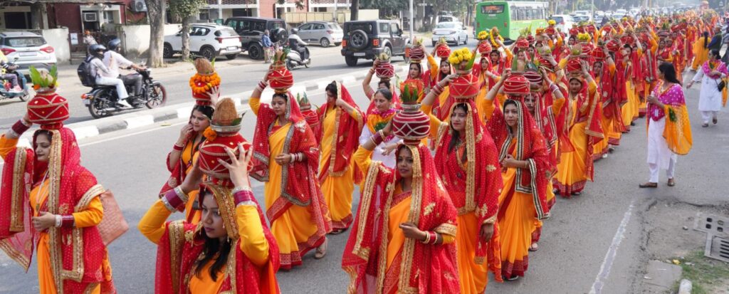 आम के पत्तों का कलश में स्थापित होना उसकी सतत हरियाली और फलप्रदता का द्योतक है, ठीक वैसे ही जैसे प्रभु कथा सदैव कल्याणकारी है और मानवता को मोक्षमार्ग का फल प्रदान करती है। स्वामी ने कहा कि श्री राम कथा आदर्श जीवन का मार्गदर्शन करती है और जीवन में सौंदर्य, शांति और दिव्यता का संचार करती है। यात्रा में 1100 सौभाग्यवती महिलाएँ, पीताम्बर परिधान धारण कर कलश सिर पर लिए, पूरे नगर में प्रभु श्री राम का संदेश प्रसारित करती रहीं। यात्रा के दौरान विभिन्न संस्थाओं एवं समितियों ने भव्य स्वागत किया। पूरे शहर का वातावरण भक्तिमय बन उठा और मार्ग राममय हो गया। यह मंगलमयी कलश यात्रा सेक्टर 30–20–21 के निर्धारित मार्गों से होते हुए अंततः सेक्टर 34 स्थित प्रदर्शनी ग्राउंड में पहुँचकर संपन्न हुई।